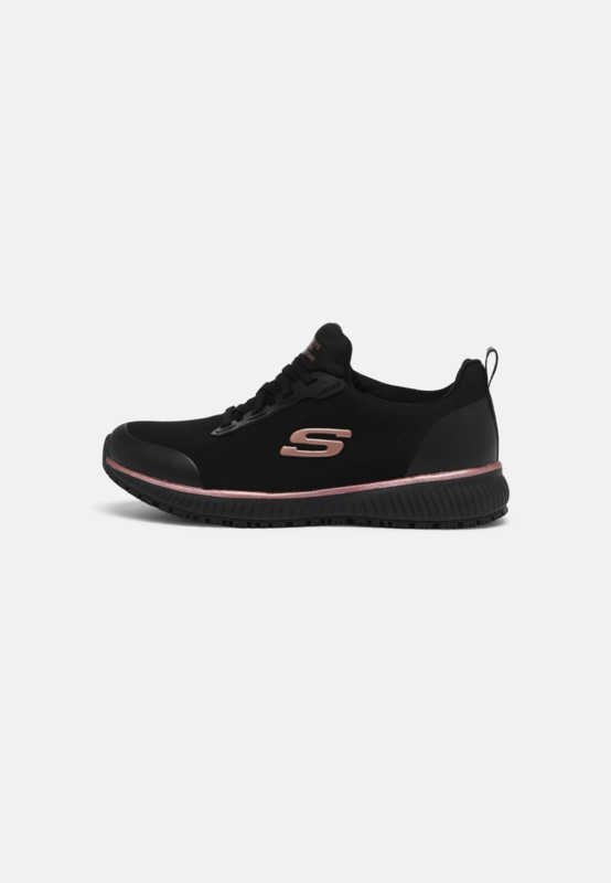 Zwart met een rosé goud randje, werkschoenen voor dames van Skechers.